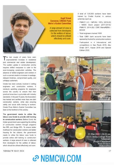 CREDAI Pune’s Kushal was tasked by the National Skill Development Coporation of India, Ministry of Finance, to develop a workable model to upskill construction workers. Through this pilot project Kushal trained and certified 30000 construction workers whilst developing the content, framework and methodology for skilling construction workers. In the past 15 years, Kushal has skilled more than 150000 workers through various government funded, CSR funded and self funded programs.